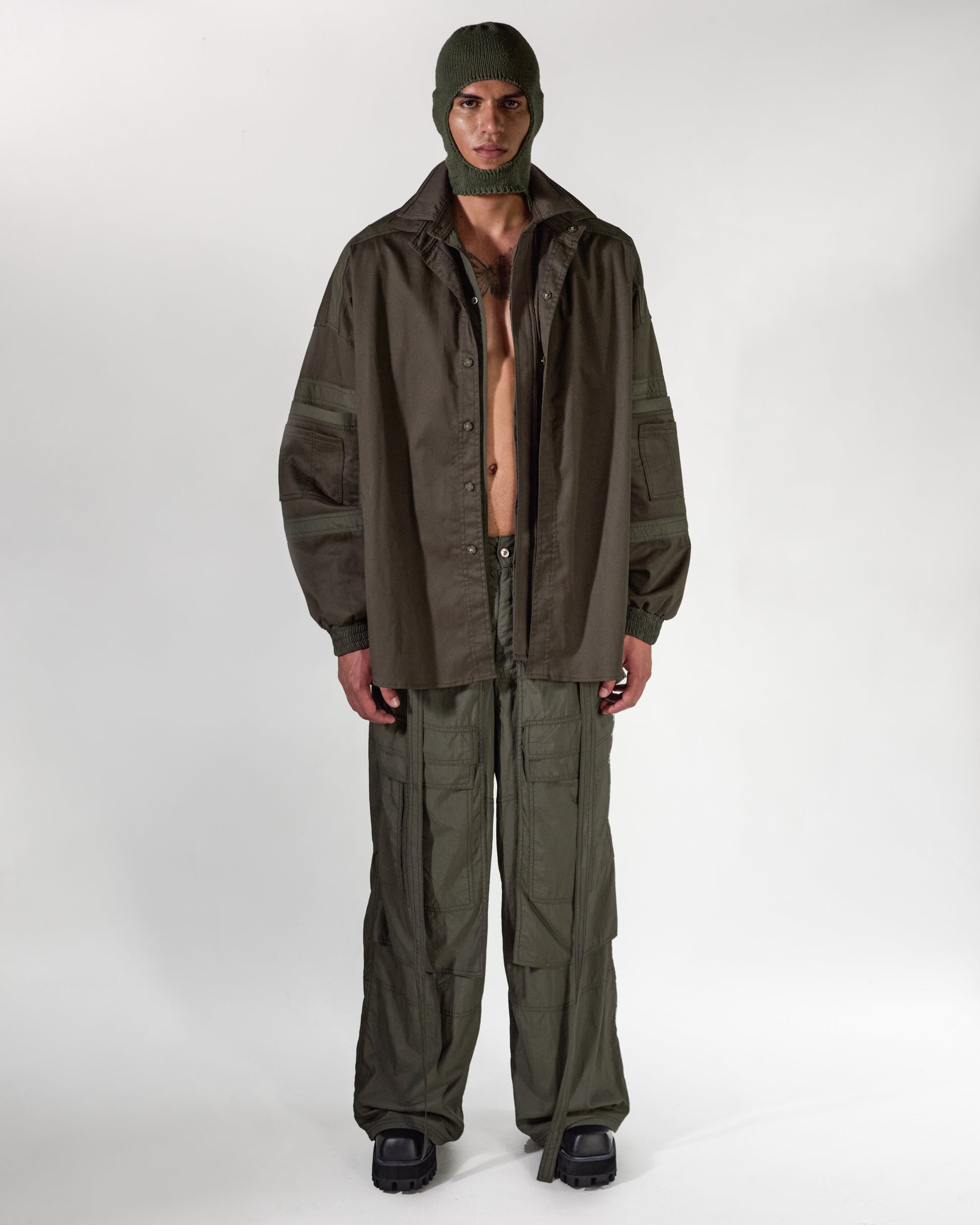 Camisa con doble cuello y mangas oversize.