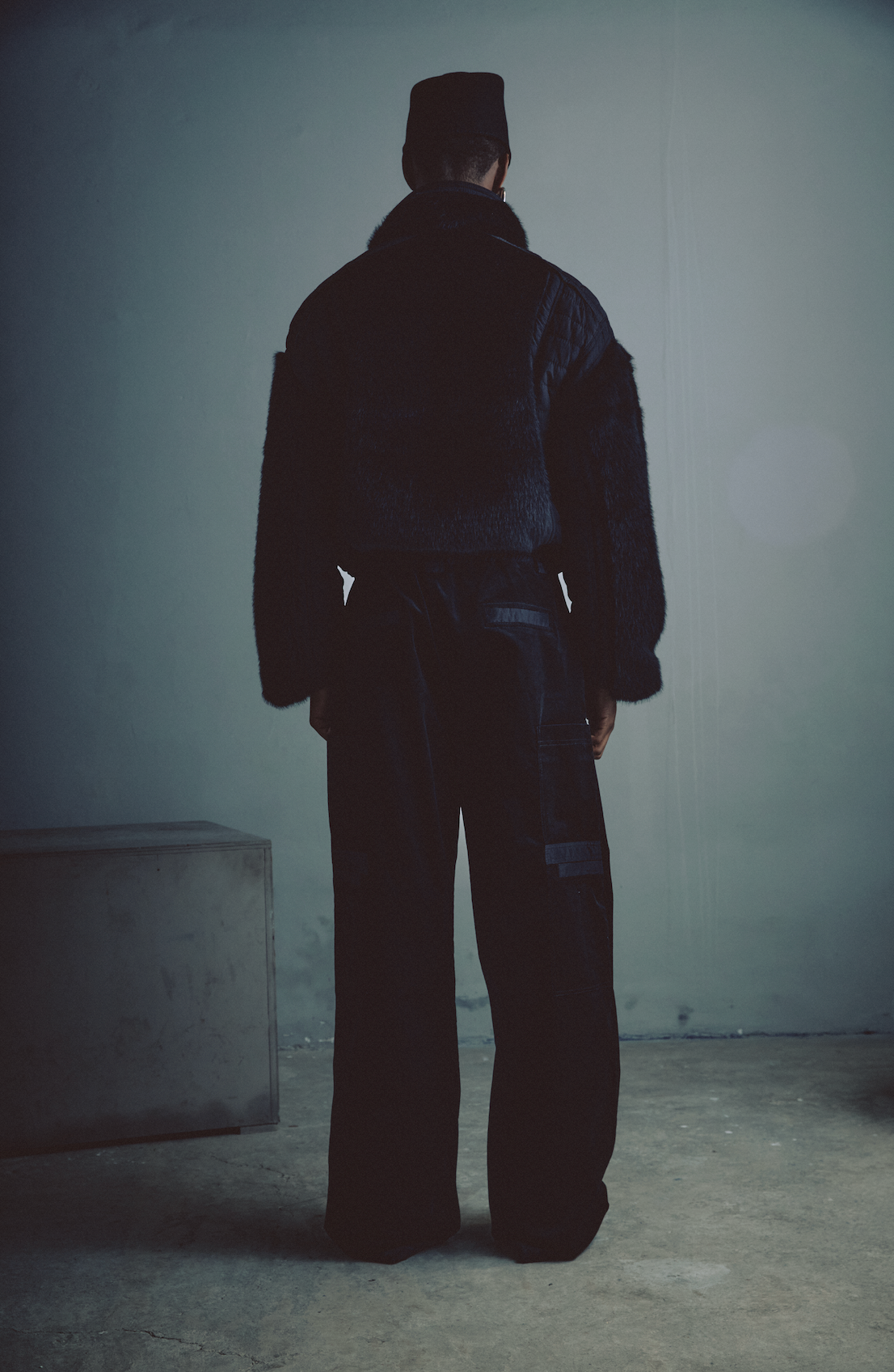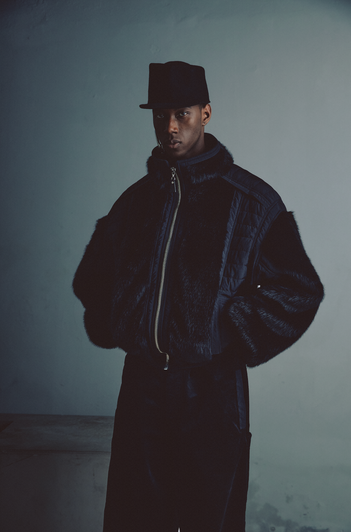 Bomber jacket confeccionada en tafeta y textil con textura de pelo.