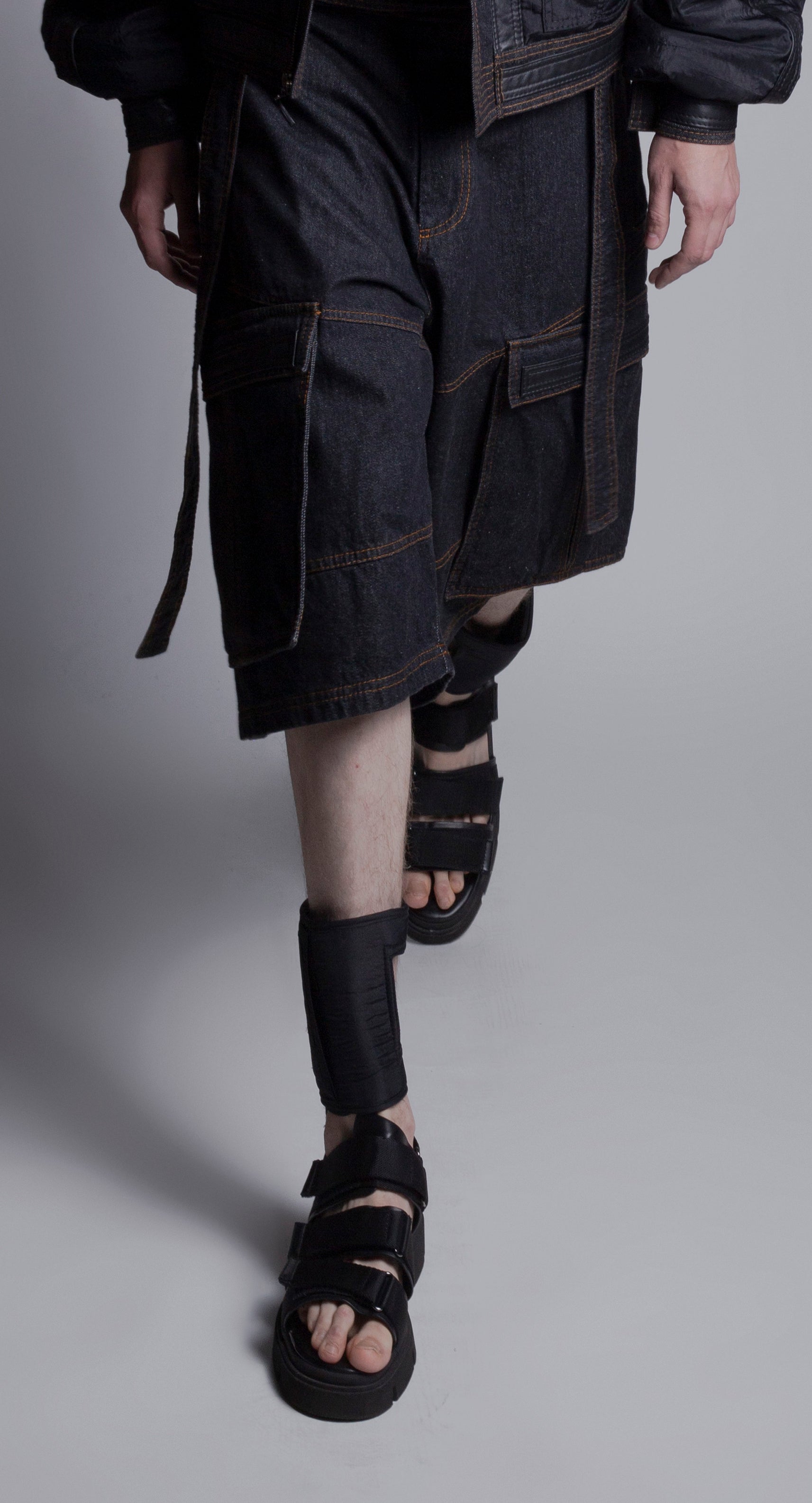 Pantalón corto confeccionado en denim con bolsillos laterales y lazos ajustables en cintura.