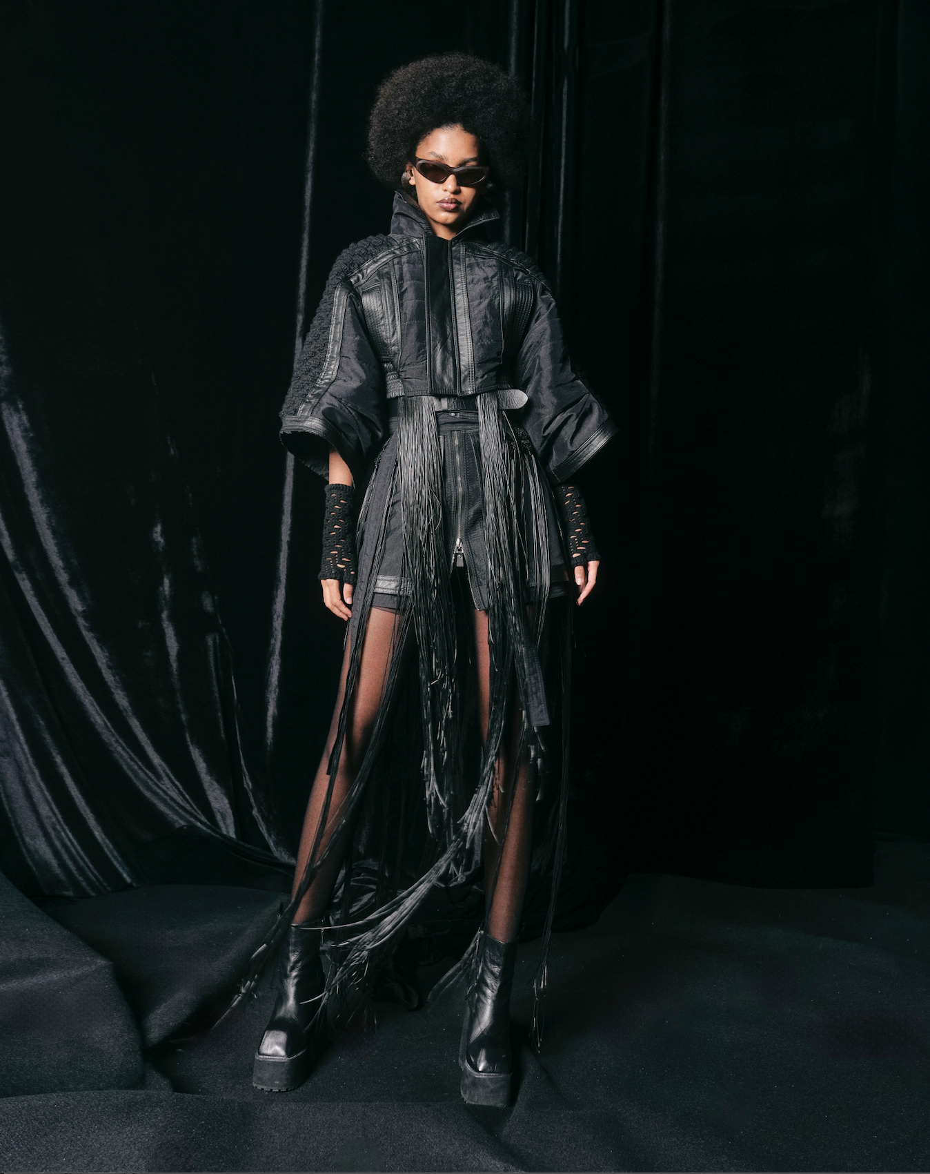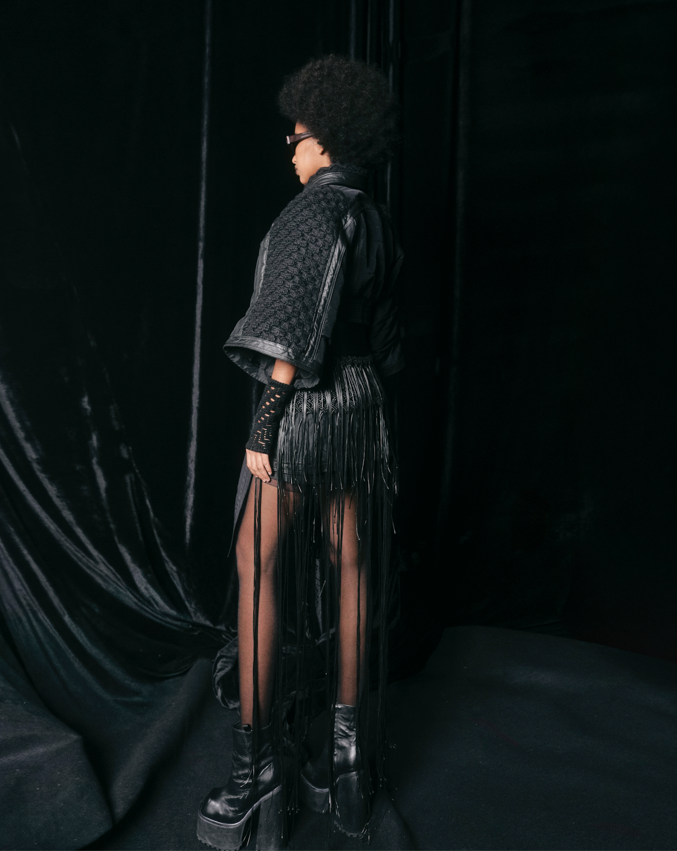 CROP JACKET DE MANGAS AMPLIAS TRES CUARTO. CON ADICIÓN DE TEXTURA TEJIDA A MANO CON TEXTURA DE PANAL DE ABEJAS.