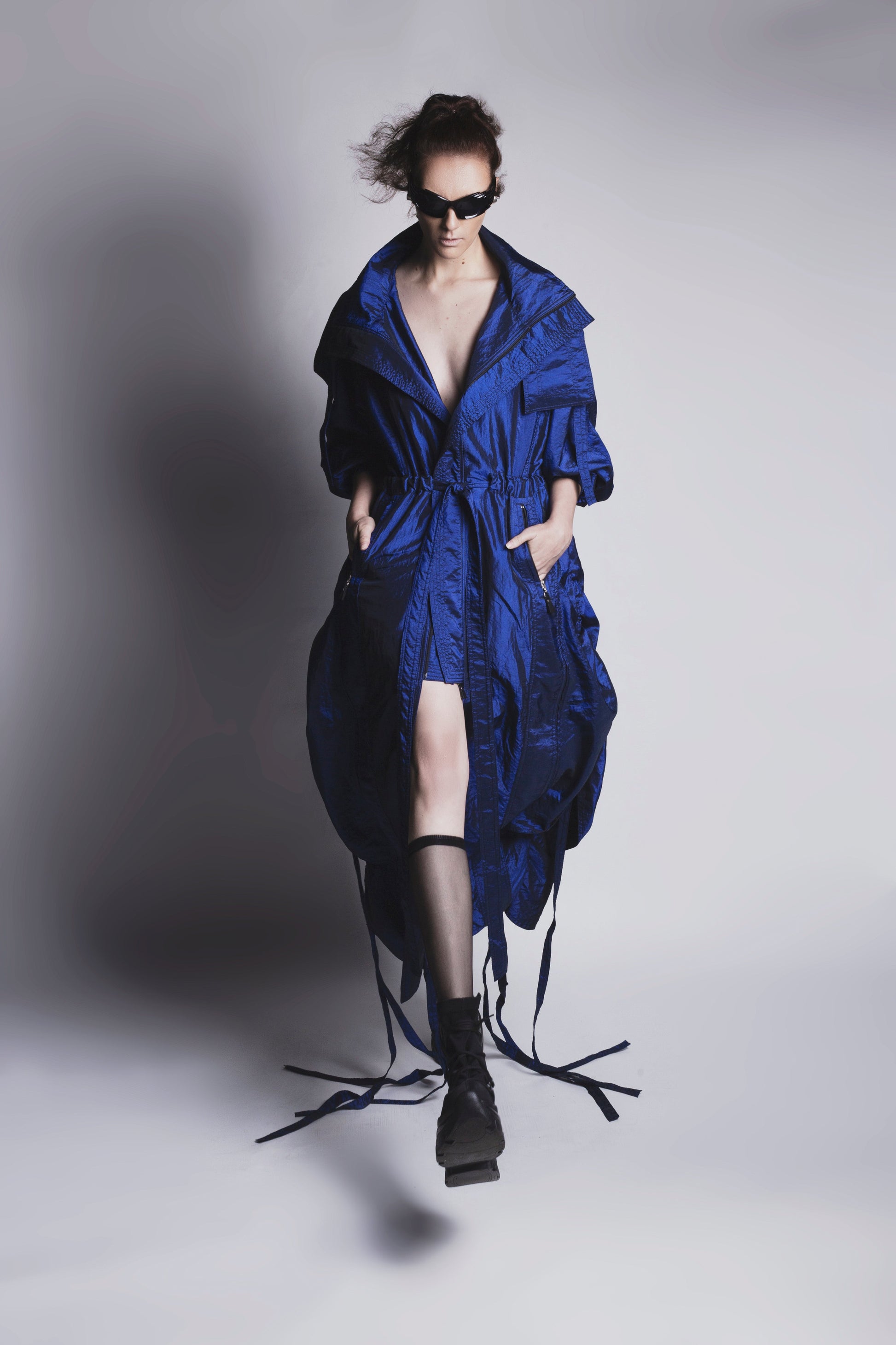 Gabardina deportiva confeccionada en tafeta en silueta oversize con lazos ajustables y bolsillos laterales.