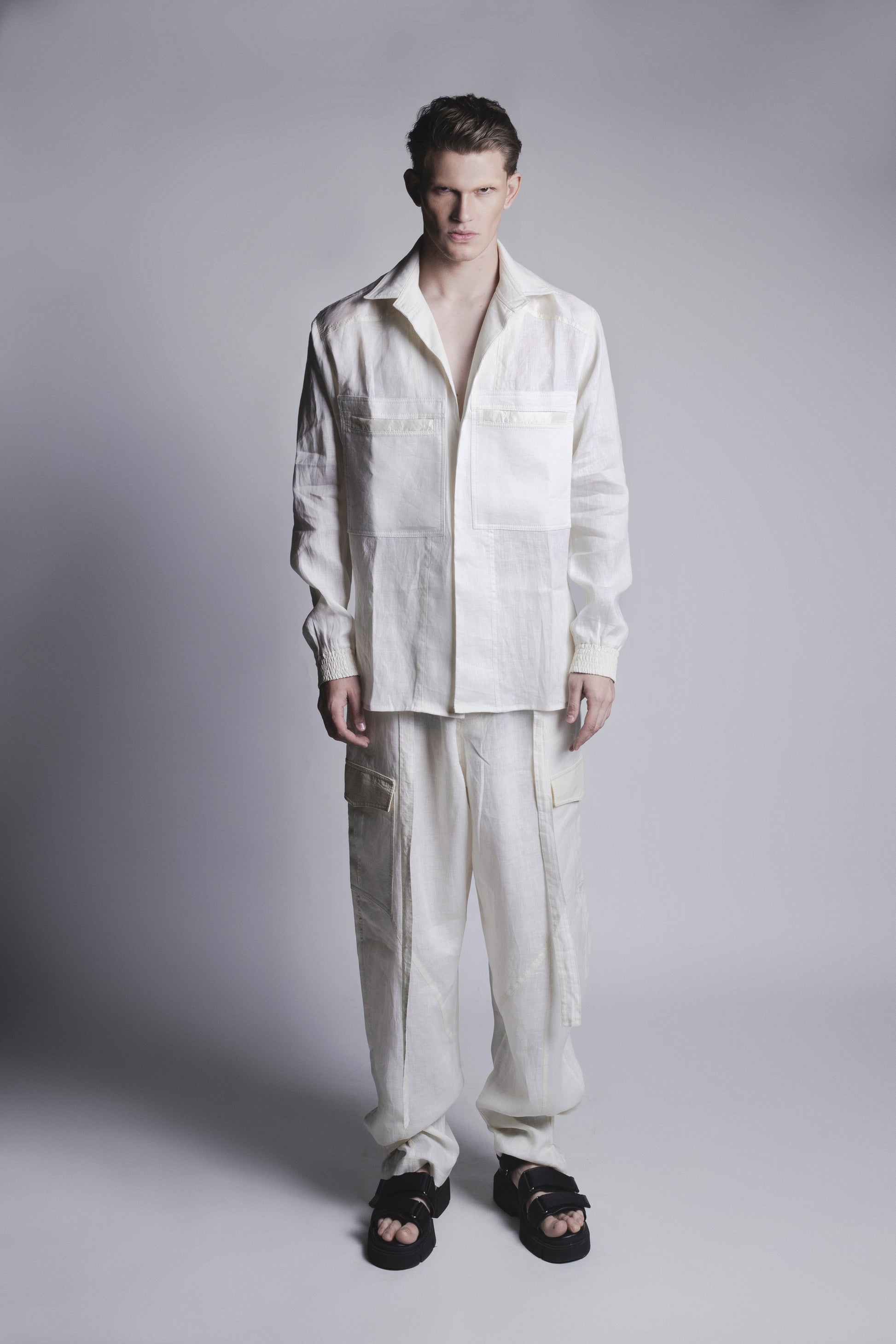 Camisa mangas largas de cuello camisero, con bolsillos frontales y elástico en los puños.