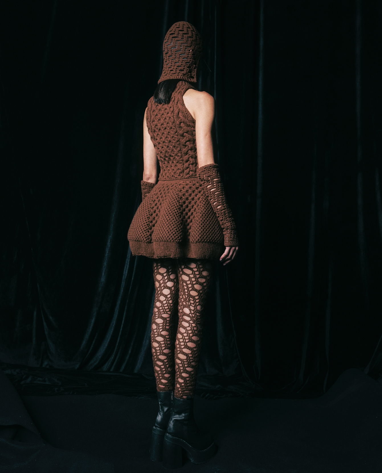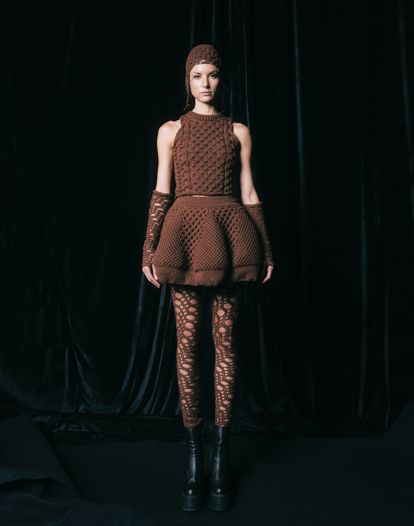 TOP SIN MANGAS TEJIDO A MANO EN TÉCNICA EN DOS AGUJAS. CON TEXTURA INSPIRADA EN CANASTOS DEL CAMPO COLOMBIANO.