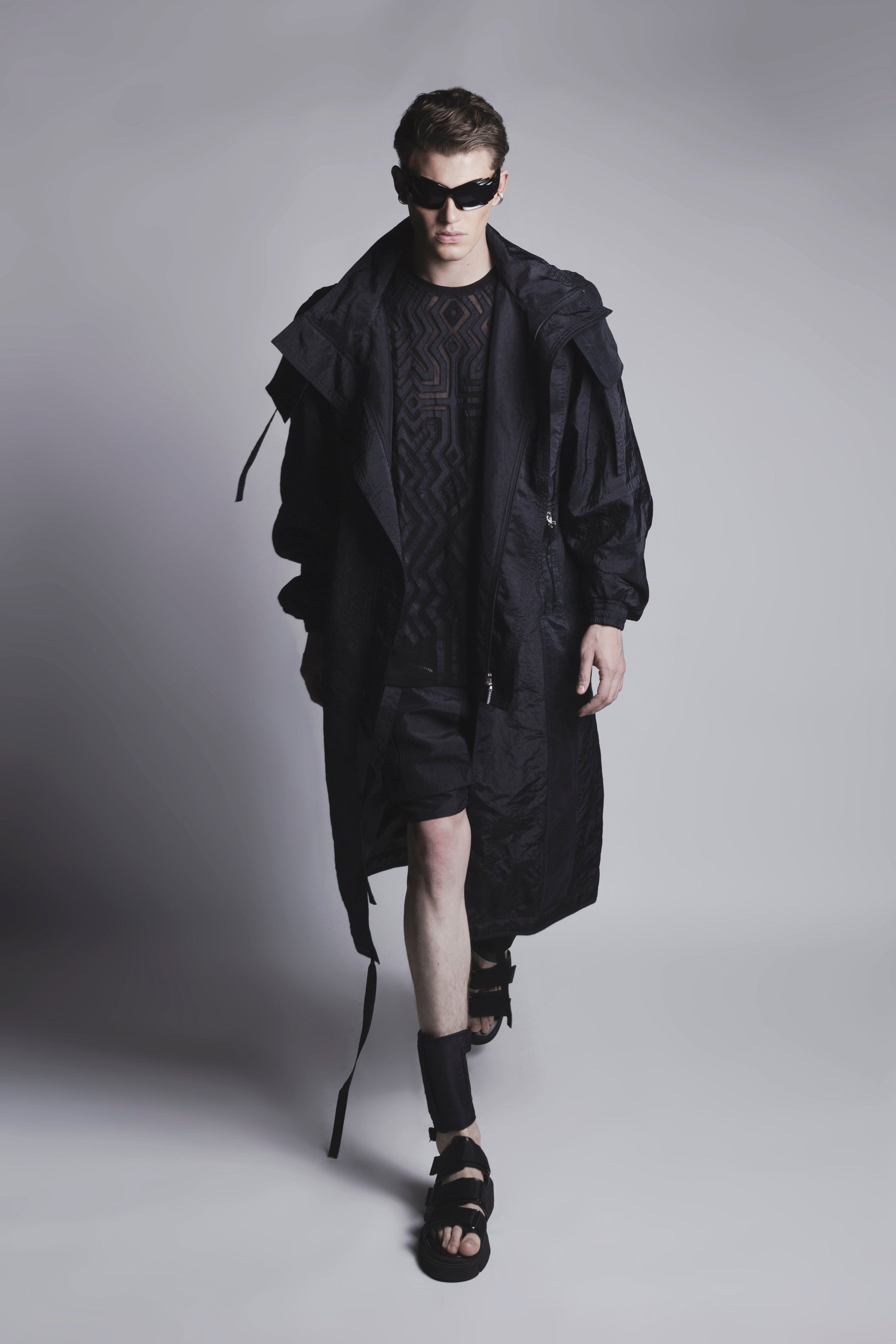 Trench coat deportivo confeccionado en tafeta material liviano, que le aporta movimiento. La pieza tiene lazos que permite transformar la silueta. Además de cremalleras y capota.